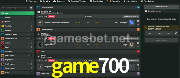 A aposta game700 oferece aos jogadores a experiência mais conveniente de apostas em eSports!